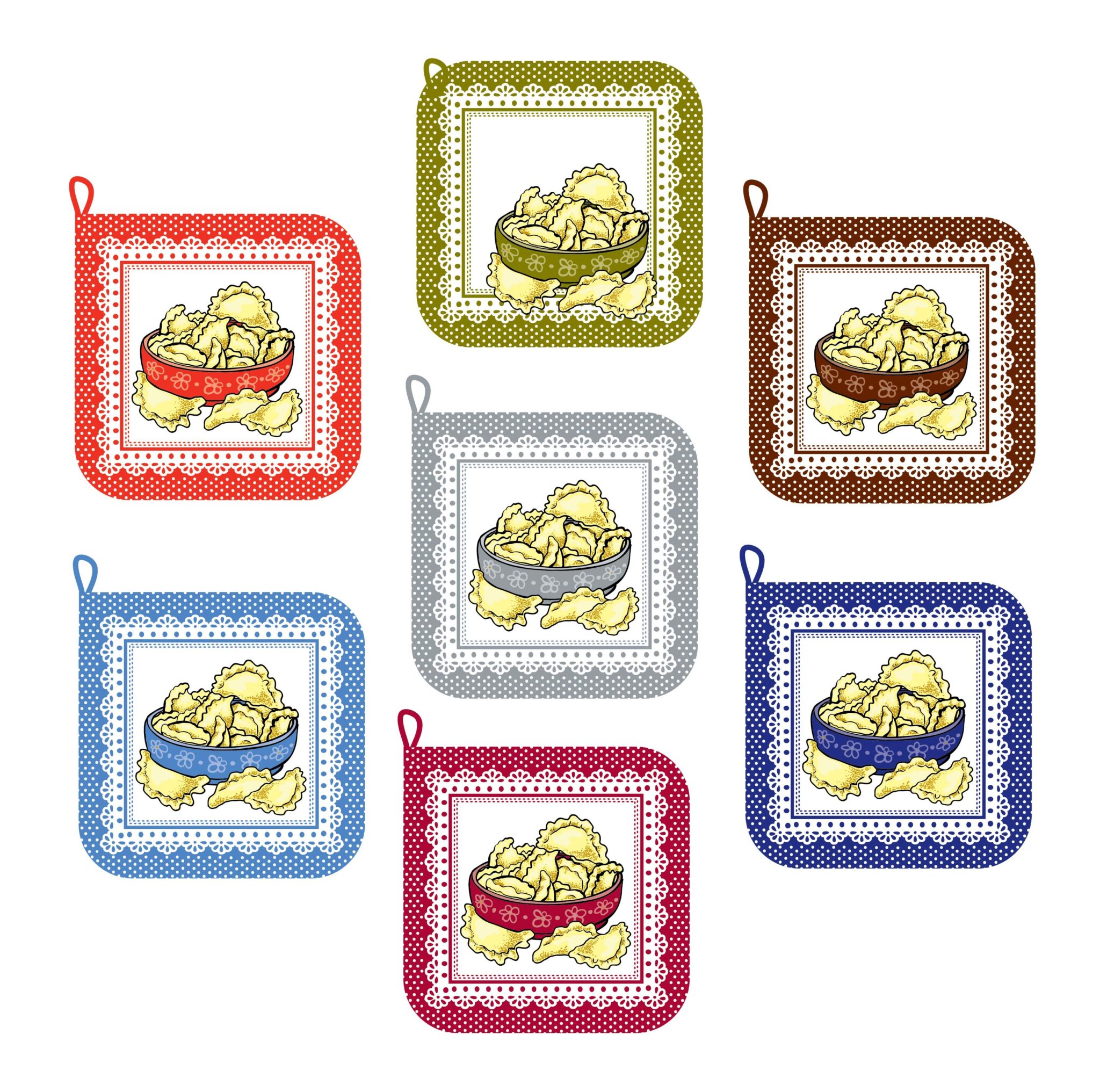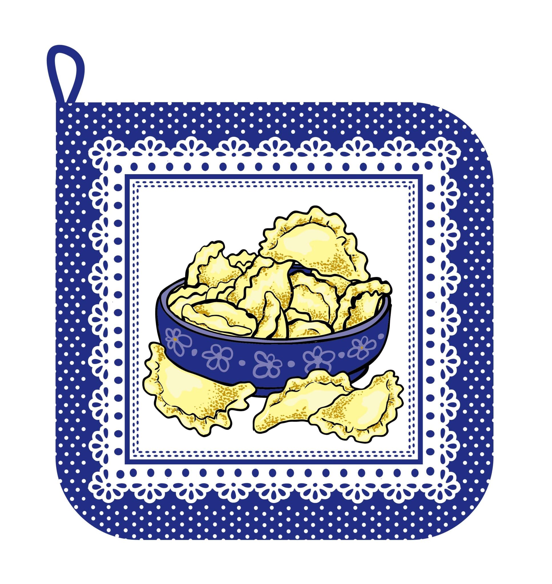 Podkładka z nadrukiem. Bardzo przydatna w kuchni podczas gotowania, może być również atrakcyjnym prezentem ze ściereczką i rękawiczką.